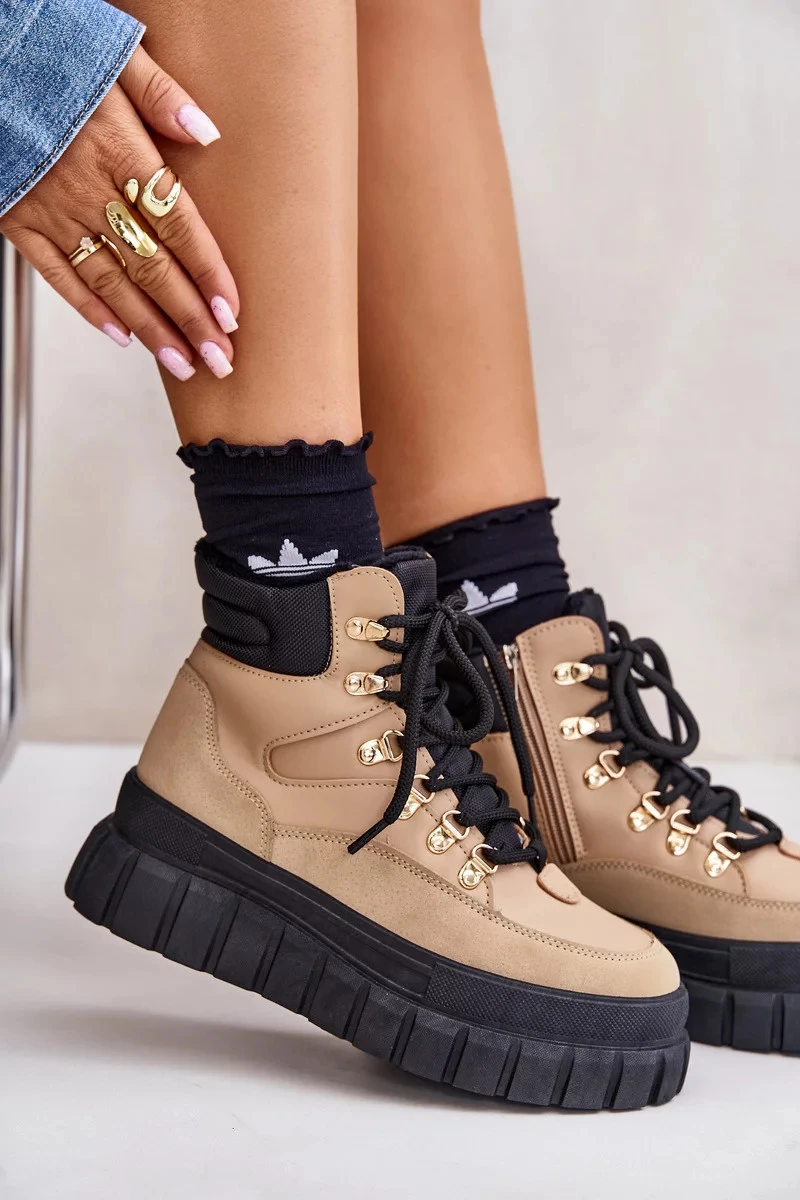 Dámské Zateplené Kotníkové Boty Na Platformě Hnědé Jelení