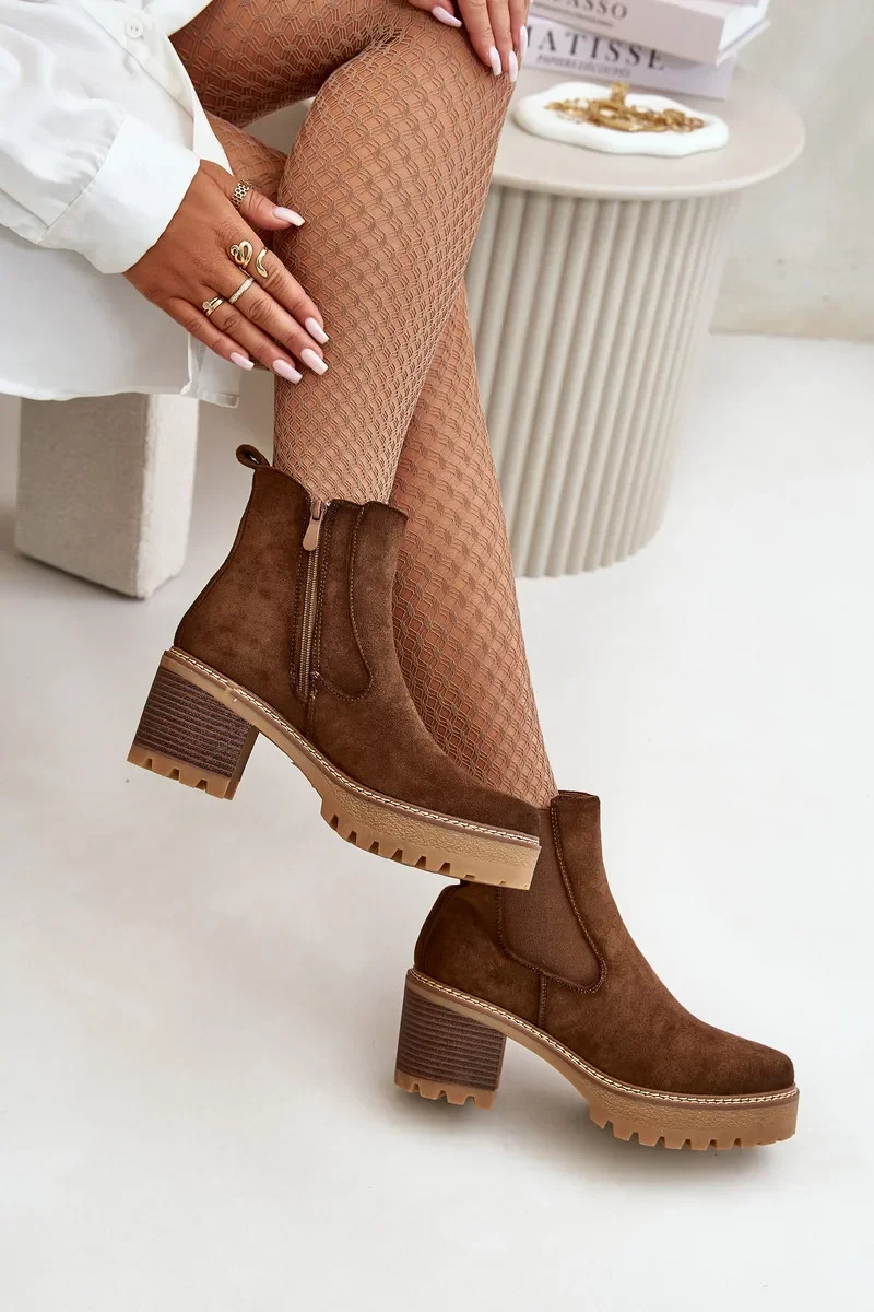 Dámské Zateplené Kotníkové Boty Na Podpatku Eko Semišové Hnědé Irissinae