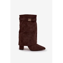 Dámské zateplené kotníkové boty na podpatku s ozdobným páskem Luvielle – čokoládové
