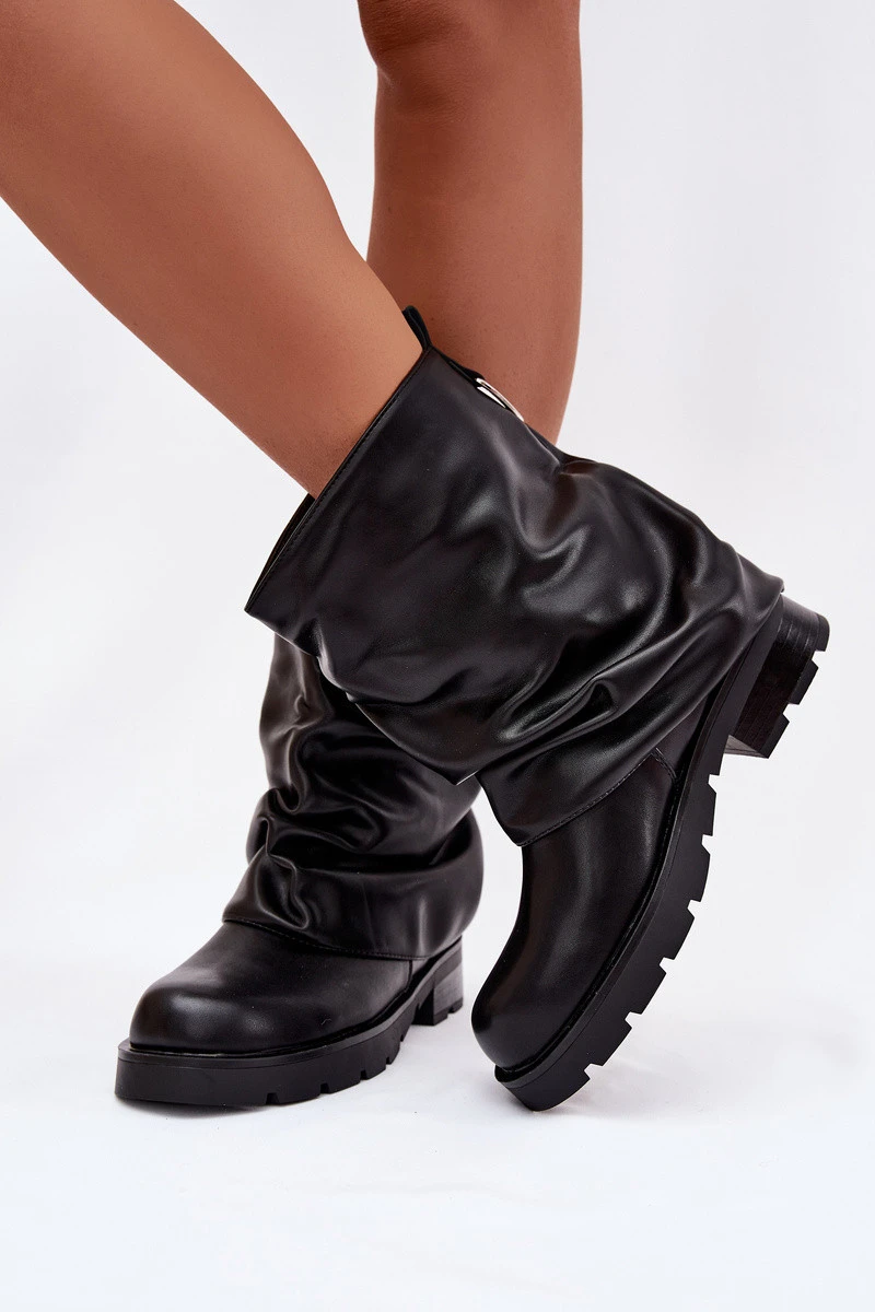 Dámské zateplené kotníkové boty s řasenou cholewką – černé Gracine