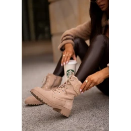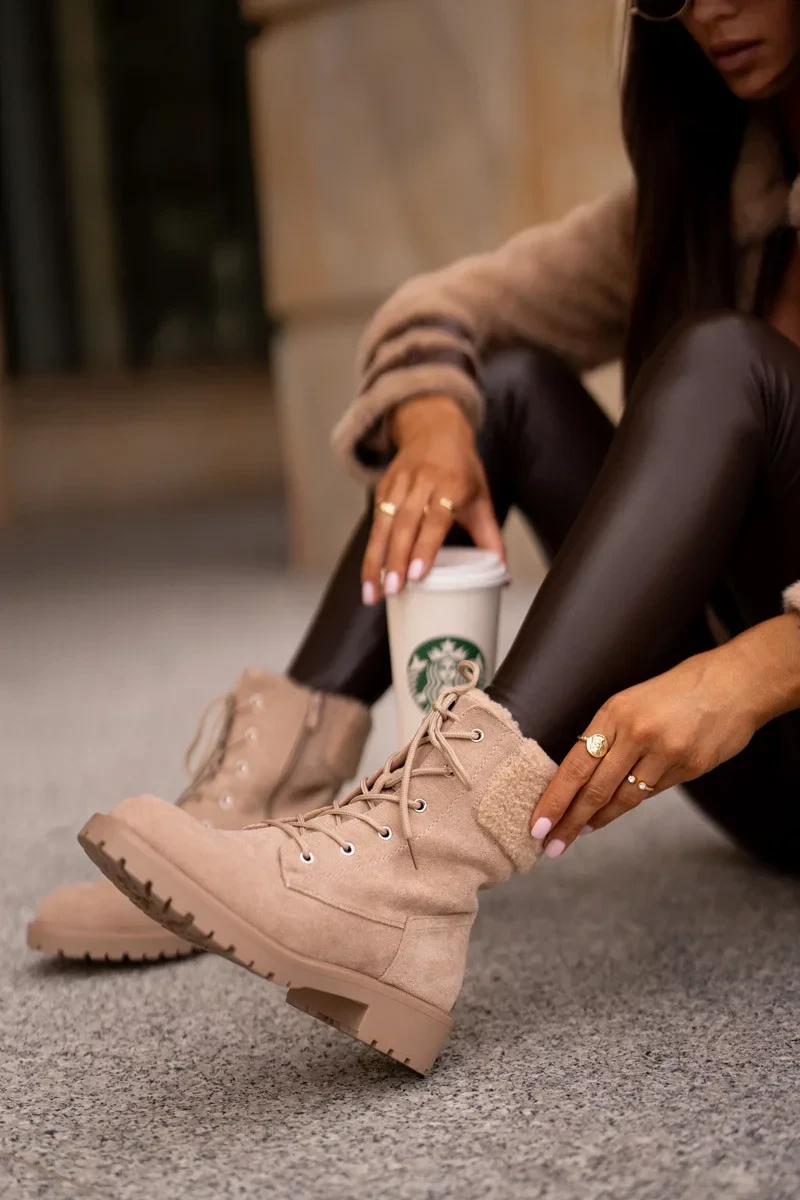 Dámské Zateplené Kotníkové Boty Workery Na Zip Béžové Mivael