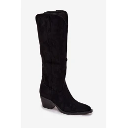 Dámské zateplené kozačky kovbojky na podpatku Esmira – černé, eko semiš