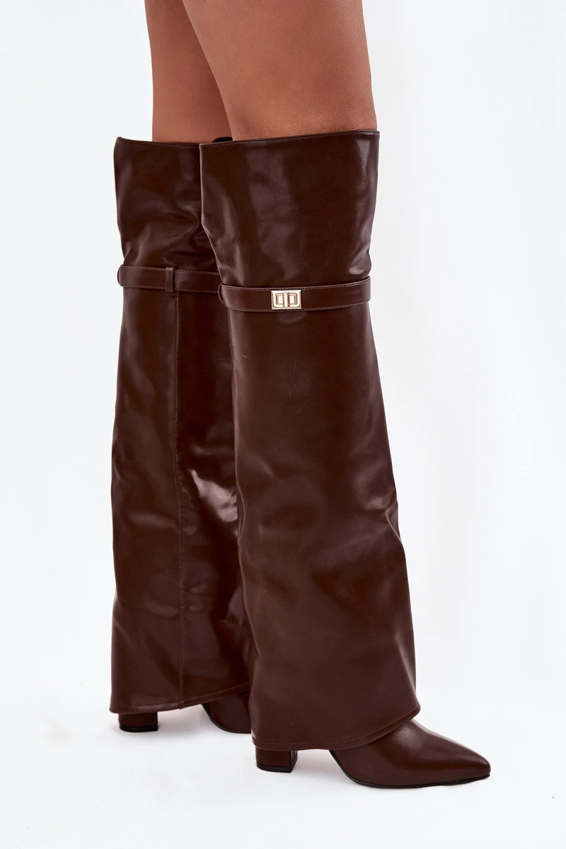 Dámské zateplené kozačky s holenicí nad kolena Serelle – hnědé