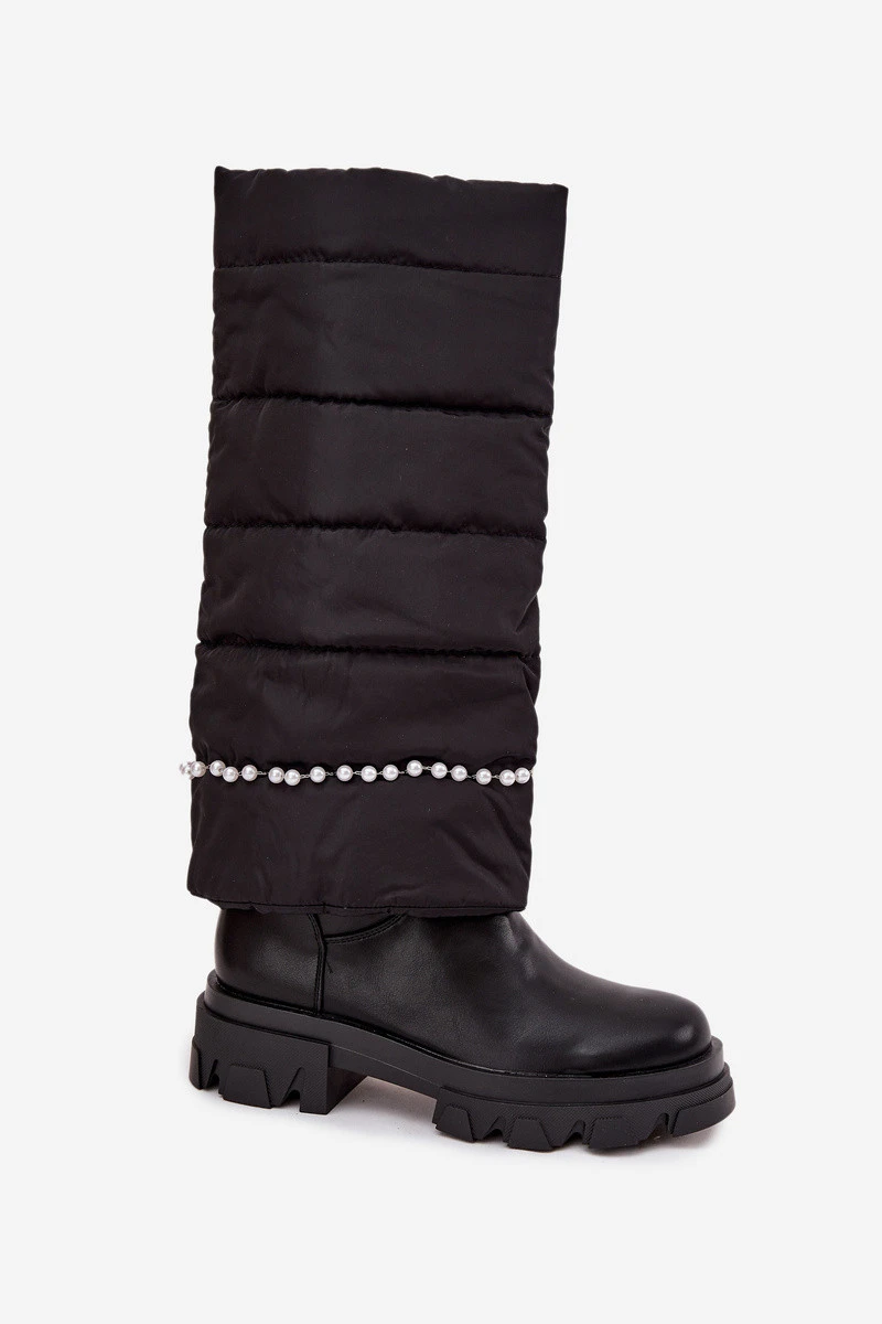 Stylové dámské zimní kozačky Irvette v černé barvě s hřejivým zateplením a elegantními korálkovými detaily.
