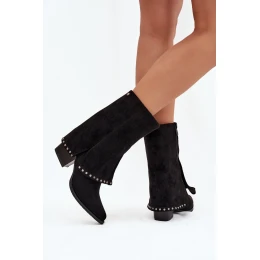 Dámské zateplené kozačky s ohrnovaným svrškem Vinceza – černé