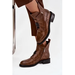 Dámské zateplené kožené boty Briselda – hnědé, s dekorativním detailem