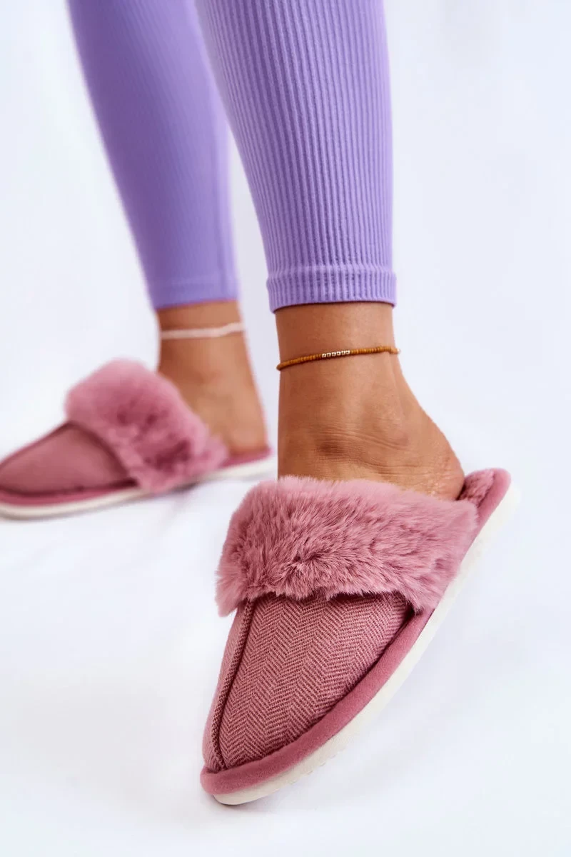 Dámské zateplené pantofle s kožíškem Tmavě růžové Franco