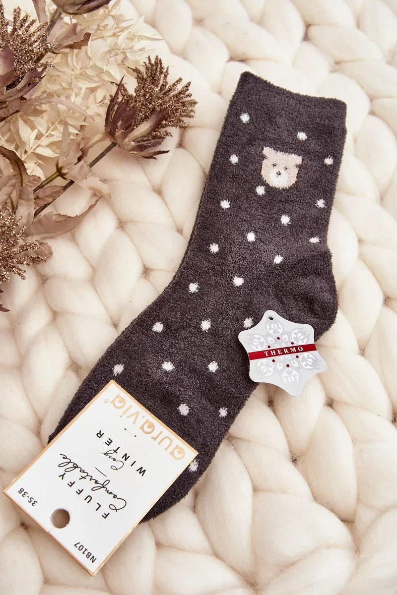 Dámské zateplené ponožky s puntíky a medvídky, tmavě šedé