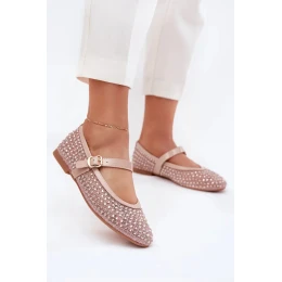 Dámské zdobené baleríny s páskem a přezkou Avirae – béžové