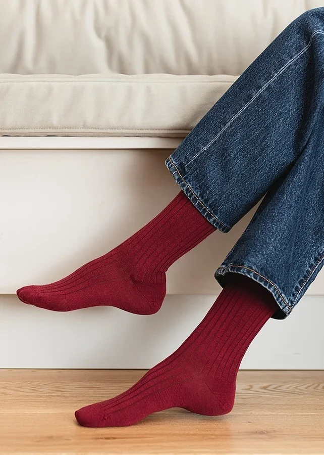 Ponožky jsou jemně žebrované, bezešvé a mají lem, který při nošení netlačí.