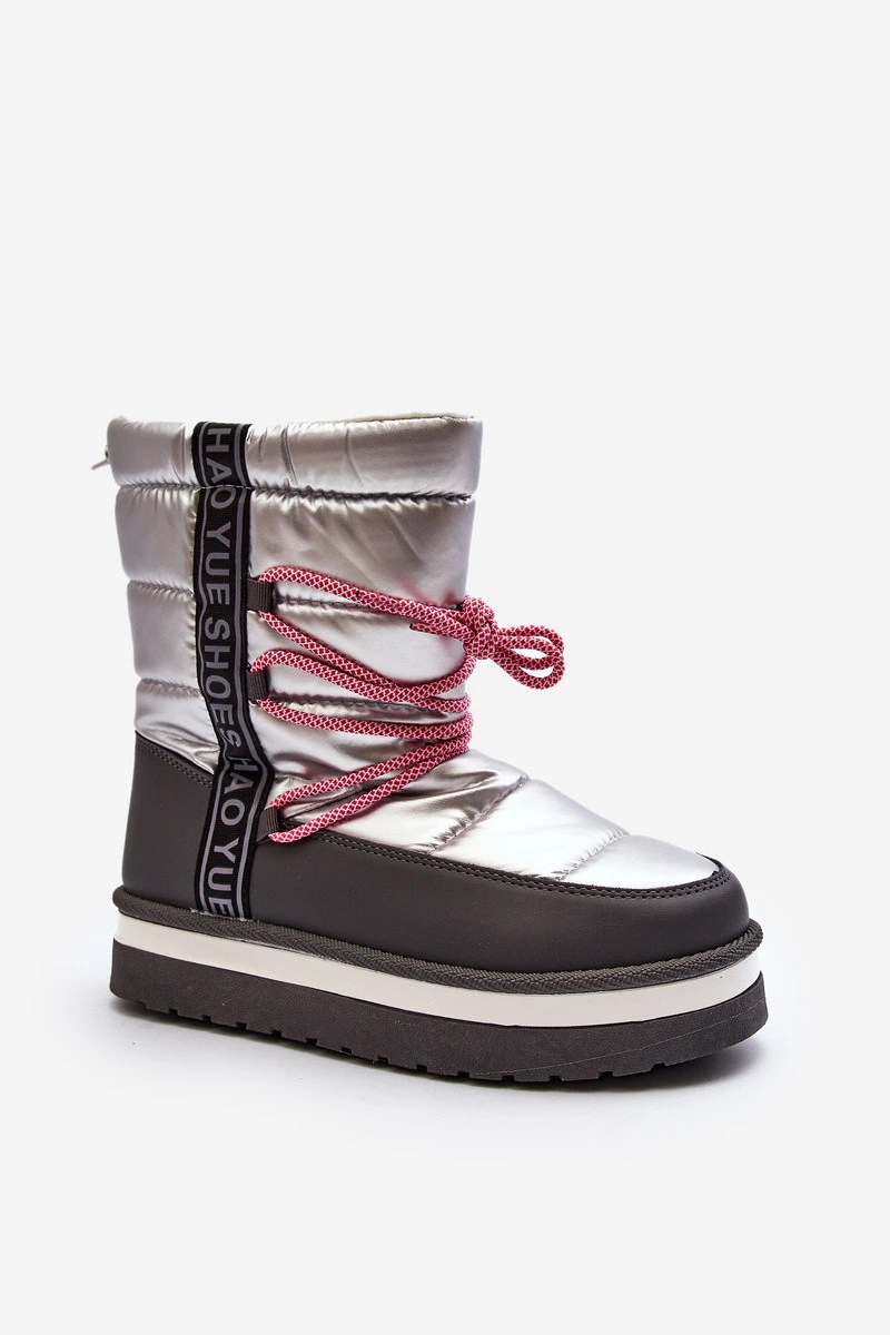 Dámské zimní boty s šněrováním stříbrné Lilara