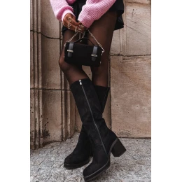Dámské kozačky z ekologické semiše jsou skvělou volbou na podzimně-zimní sezónu. Model na robustním sloupkovém podpatku zajišťuje stabilitu a pohodlí při nošení. Zaoblené špičky dodávají celkovému vzhledu klasický styl a praktické zapínání na zip usnadňuje obouvání a svlékání. Vnitřek vyhřívaný měkkým obouvacím plédem zaručuje tepelný komfort v chladnějších dnech. Jsou to univerzální kozačky, které se skvěle hodí jak pro každodenní, tak i elegantnější stylizace. Při výběru velikosti se prosím řiďte tabulkou velikostí. Při výběru velikosti se řiďte tabulkou velikostí.