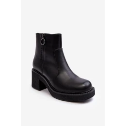 Boty dámské umístěné na masivním podpatku a platformě. Vyrobeno z eko kůže. Zapíná se na zip po straně. Střed oteplený příjemným na dotek kožešinou. Špičky zaoblené. Svršek ozdobený prošíváním a dalším, krátkým zipem. Patka je zesílená. Při výběru velikosti se řiďte tabulkou velikostí.