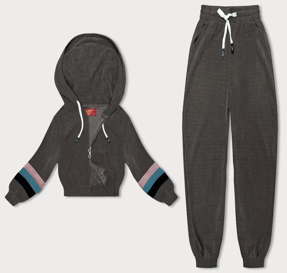 Dámská tepláková souprava v grafitové barvě s barevnými vsadkami (AMG-346A)