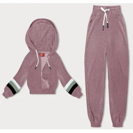 Růžová dámská tepláková souprava s barevnými vsadkami (AMG-346A)