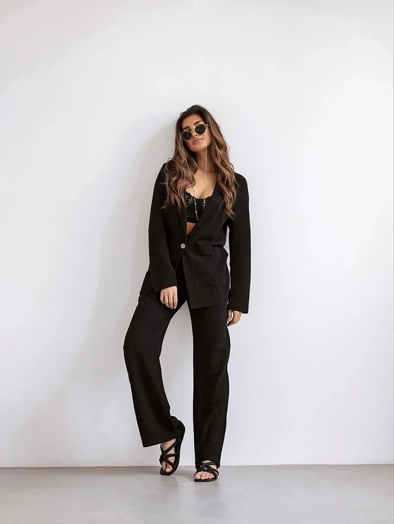 Černý dámský oblek se lnem (VE48)