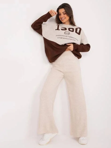 Béžovo/hnědý dámský dvoudílný komplet s volným svetrem (1497)
