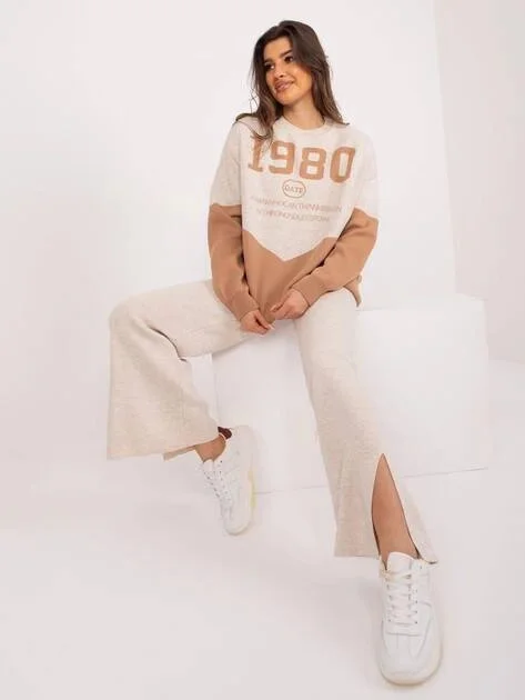 Béžovo/velbloudí dámský dvoudílný komplet s volným svetrem (1497)