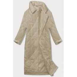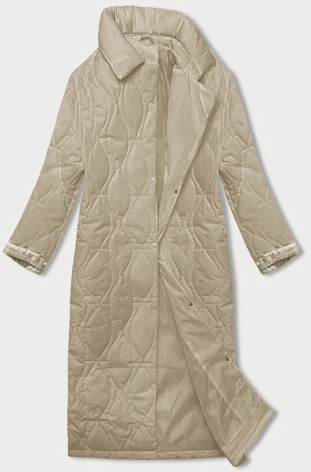 Kabát má volný střih, je lehce zateplený vrstvou syntetické péřové výplně, má dvě kapsy bez zapínání a zapíná se patentkami. Model má délku pod kolena.
