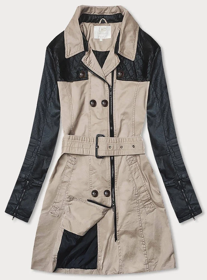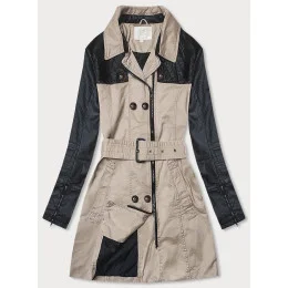 Béžový dámský kabát z různých spojených materiálů (M206)