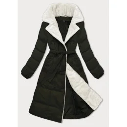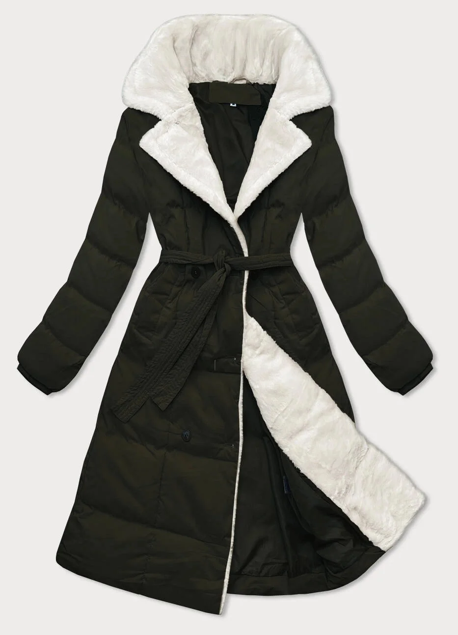 Dámský zimní kabát v barvě army s kožešinovým límcem J Style (16M9168-136)