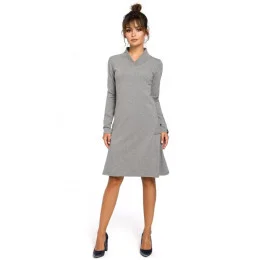 Dámskí trapézové šaty s žebrovaným lemováním B044 šedé - BEwear
