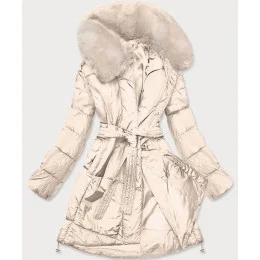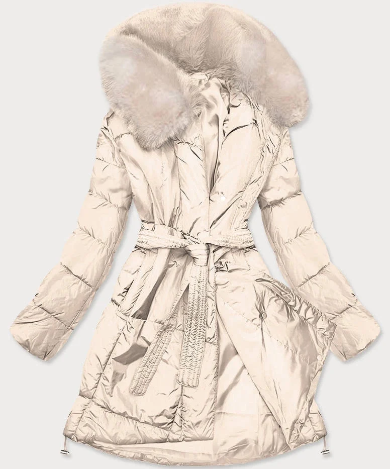 Béžový dámský zimní kabát s kožešinou (008)