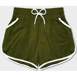 Dámské šortky v khaki barvě s kontrastní lemovkou (8K208-29)