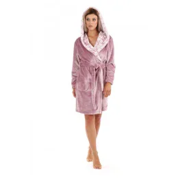 Pohodlný hřejivý 3/4 župan s kapucí pro ženy FLORA - mauve mist ve FIALOVO BÍLÉ barvě s květinovým vzorem.