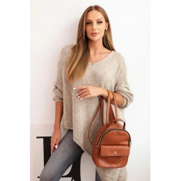 Dámský asymetrický svetr z vlny Plus Size s výstřihem do V tmavě béžový
