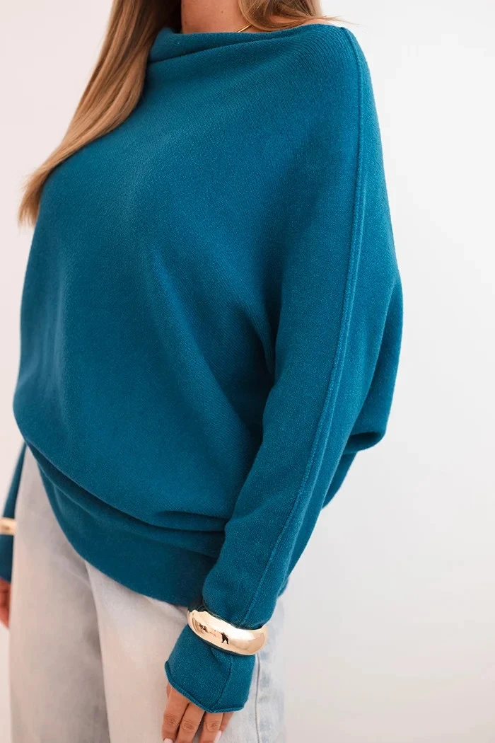 Dámský asymetrický svetr netopýr je módní návrh, který se skvěle hodí jak pro každodenní, tak i elegantní stylizace. Volný oversize střih zajišťuje pohodlí a svobodu pohybu, a charakteristický netopýří střih s asymetrickým spodním lemem dodává celku originální a moderní vzhled.
