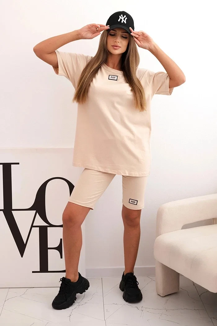 Dámský bavlněný komplet s krátkým rukávem a šortkami béžový