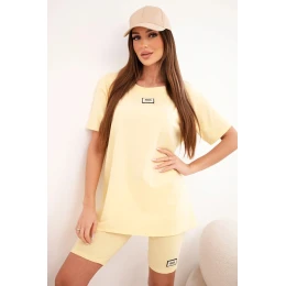 Dámský bavlněný komplet s krátkým rukávem a šortkami žlutý
