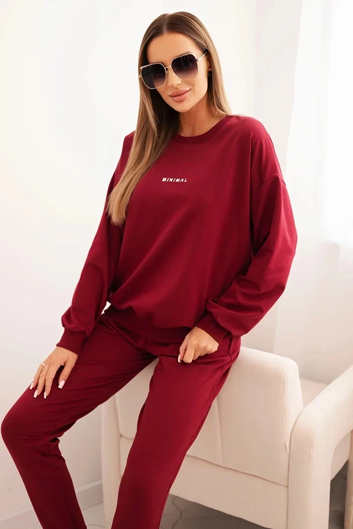 Dámský bavlněný komplet s potiskem Minimal bordový