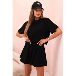 Dámský bavlněný komplet s širokými šortkami černý