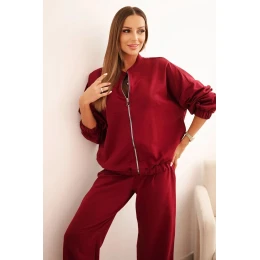 Dámský bavlněný komplet se širokými nohavicemi a mikinou na zip bordový
