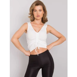 Bílý dámský top s žebrovaným lemem.