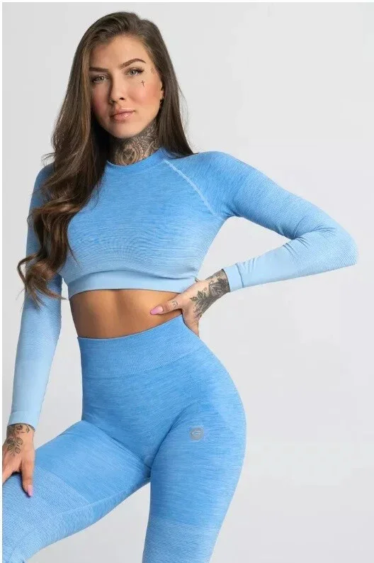 Dámský Crop-Top s dlouhým rukávem Ombre - Gym Glamour