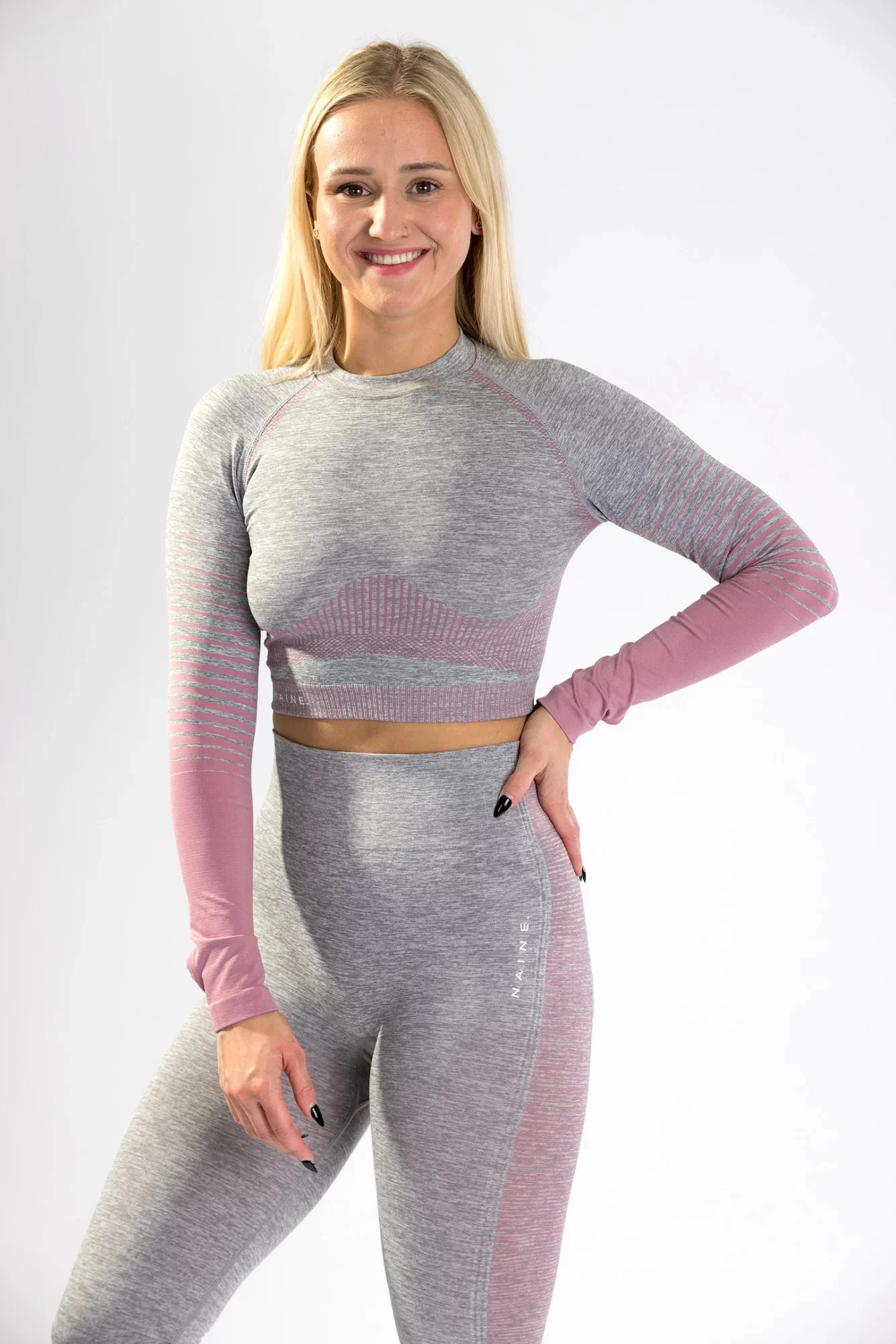 Dámský CropTop s dlouhým rukávem 5.0. růžový melír - Naine