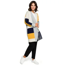 Dámský dlouhý svetr BK011 model 2 Béžovo-žluto-šedá - BEwear