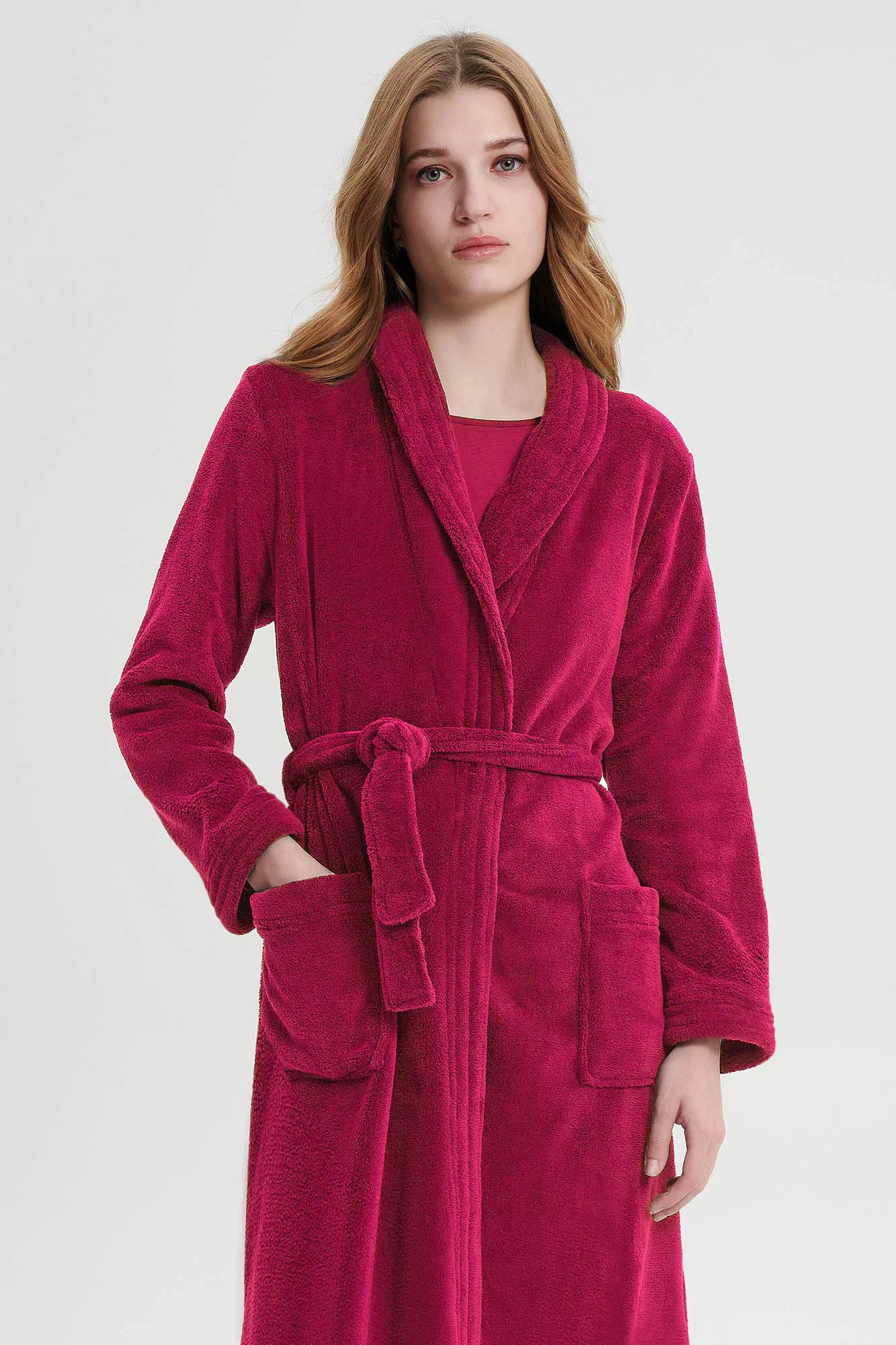Maxi dámský župan s páskem, užitečnými bočními kapsami a měkkou klopou. Klasická, jednoduchá volba, kterou budete užívat po mnoho let.