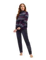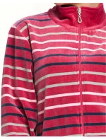 Pruhovaná mikina má jednobarevný stojáček, má pohodlné kapsy a zapíná se zipem. Jednobarevné kalhoty mají jednoduchý střih. Manžety jsou olemované stahovacími lemy.
