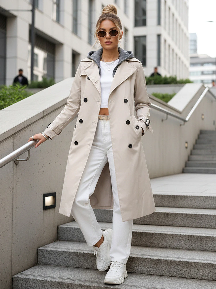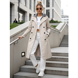 Dámský dvouřadý trenčkot s kapucí světle béžový FashionStreet TY5655