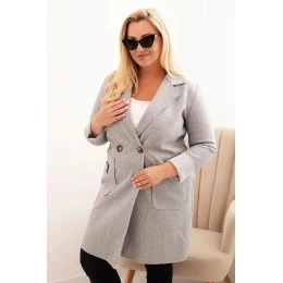 Dámský elegantní kabát Plus Size s límcem a velkými kapsami šedý