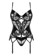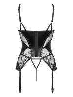 Dámský erotický korzet Goldie corset BEAUTY NIGHT FASHION - černá barva - z průsvitné síťoviny a krajky - krajkové košíčky s kosticí odhalují dekolt - zapínání na háčky - nastavitelná ramínka - podvazkové pásky - krajková tanga