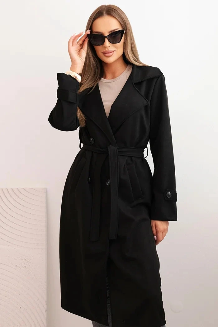 Elegantní dámský kabát s klasickým, prodlouženým střihem je skvělým návrhem na podzimní a zimní sezónu pro ženy, které ocení styl a pohodlí. Model je vybaven širokým límcem, praktickými kapsami a páskem v pase, který krásně zvýrazňuje siluetu. Délka nad kolena a dvojité zapínání na knoflíky dodávají kabátu elegantní, nadčasový charakter.