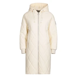 Vyroben je z kvalitního, hřejivého materiálu s vodoodpudivou úpravou, který chrání před větrem i vlhkostí. Delší střih elegantně prodlužuje siluetu, hřejivá výplň zajistí tepelný komfort a kapuce s vyšším límcem poskytne ochranu i během větrných a mrazivých dnů. Kabát má také praktické zipové kapsy, které jsou skryté a nenarušují čistý design.