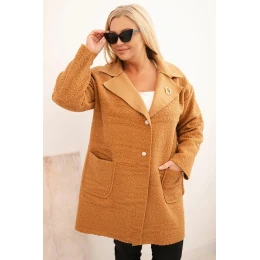 Dámský kabát Plus Size beránek s vlnou a kapsami camelový