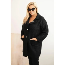 Dámský kabát Plus Size beránek s vlnou a kapsami černý