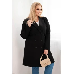 Dámský kabát Plus Size dvouřadový s límcem černý